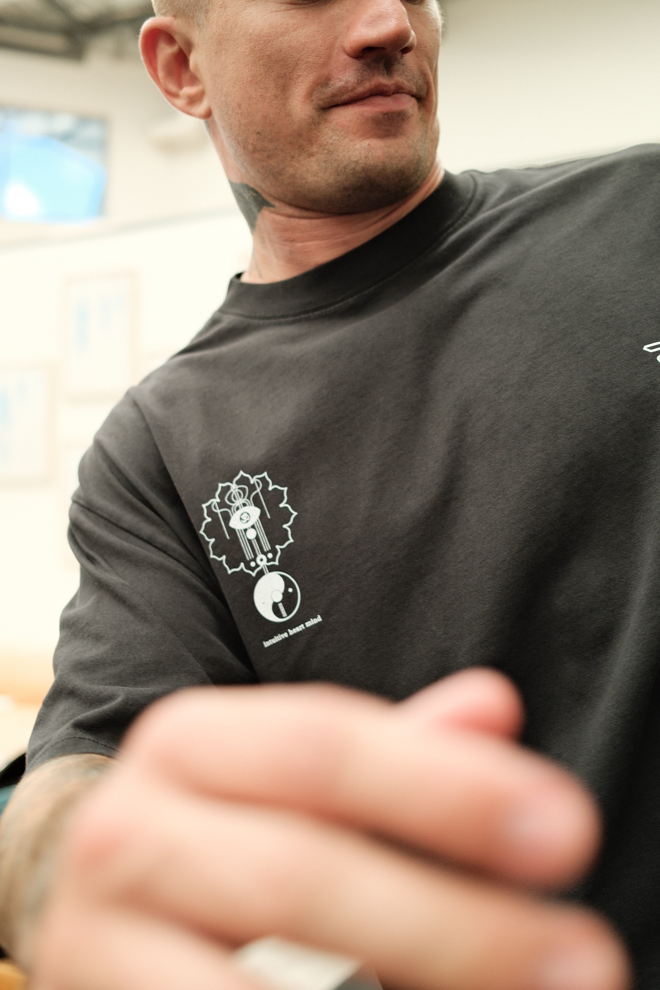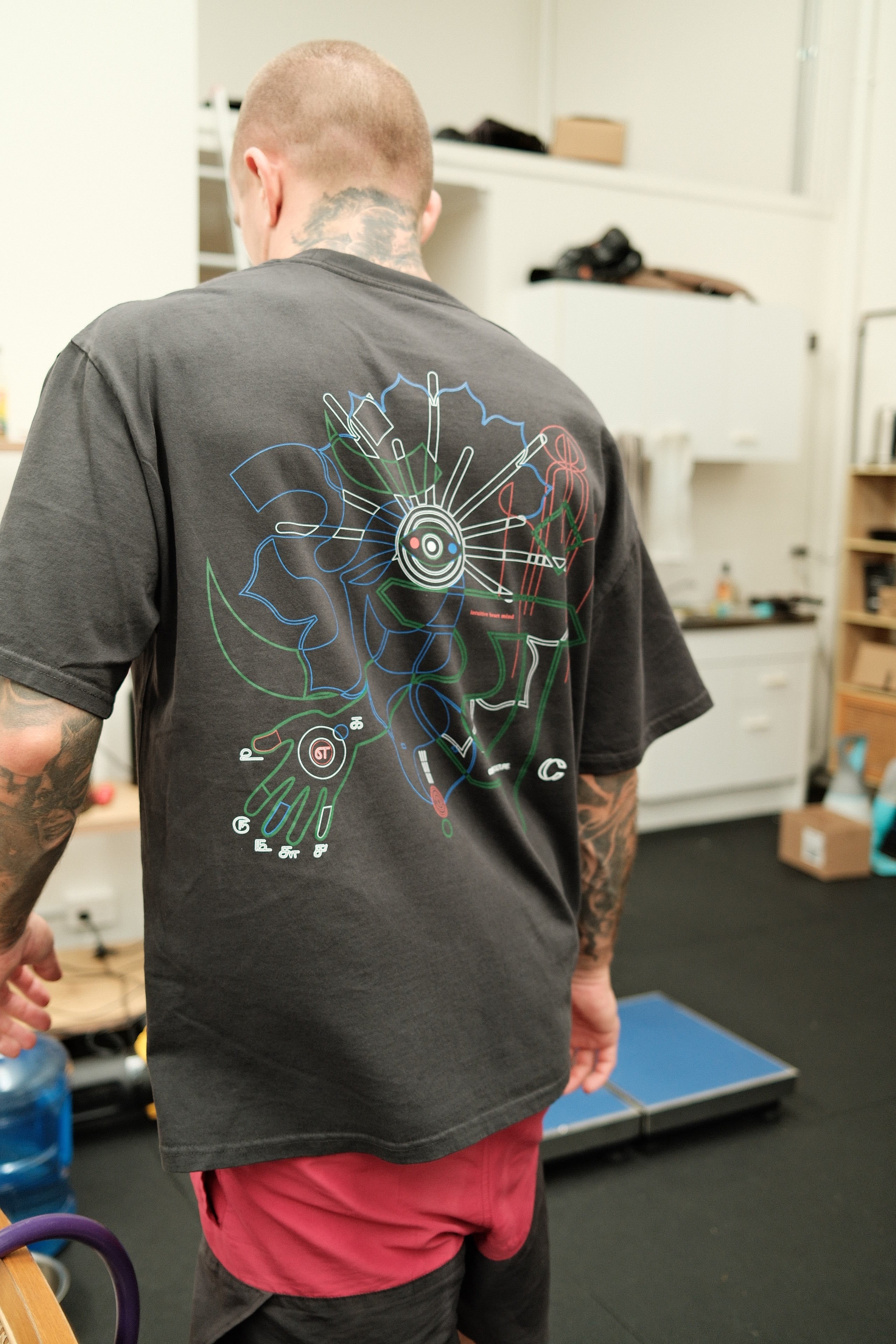 Designed with a 5cm shorter body than our standard heavy oversized tees, it features a heavy 240 GSM weight and garment dye finish, a boxy oversized fit, dropped shoulders, and twin-stitched wide neck ribbing. Crafted from 100% carded cotton.