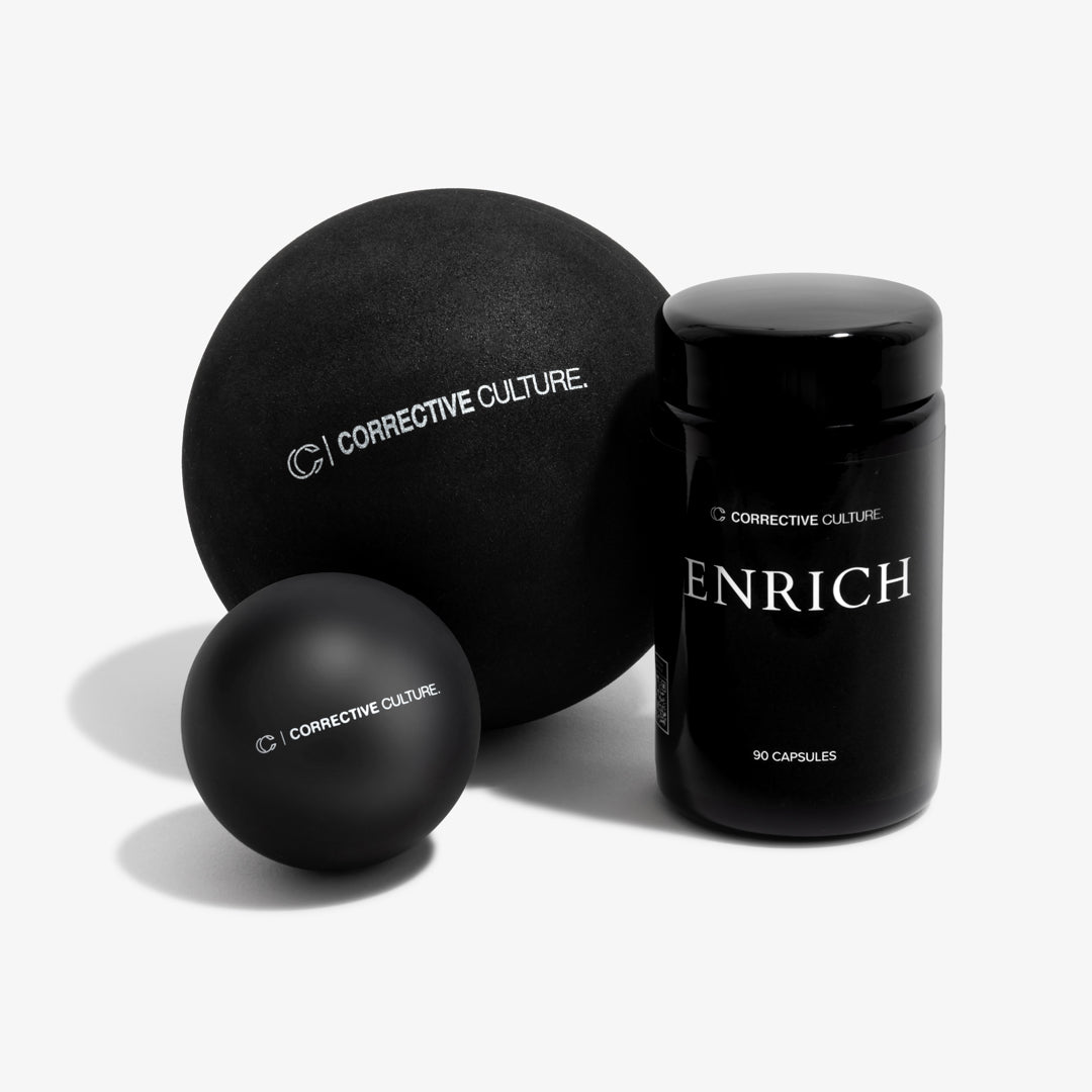 The Lacrosse Ball and the Myofascial release ball help you to release bodily tension, and work on your posture at home. These tools both serve slightly different purposes, with the Myofascial Ball being the go to for general release, and the smaller, firmer, Lacrosse Ball for a deeper, more targeted release.